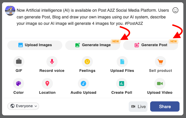 Keyword: Artificial intelligence, AI, AI image generation system, AI post and text generation system, AI article generation system, AI image editing system, Google authentication, Social Networking Site, Social Media, New Media, Digital Media, Social Network, Post A2Z Social Media, Trilok Singh